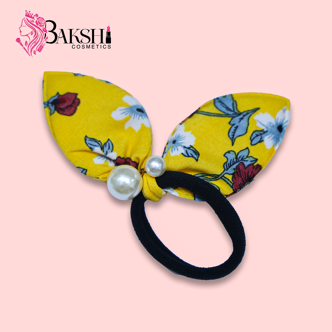 Floral Bunny Ear Pearl Hair Tie – Yellow