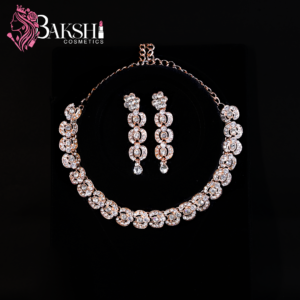 Turn every head with this beautifully crafted Floral Crescent American Diamond Necklace Set. Designed with delicate flower clusters and graceful crescent-shaped drops, this set radiates royal charm and timeless elegance. The necklace sits gracefully around the neckline, while the matching earrings and maang tikka complete the traditional look.