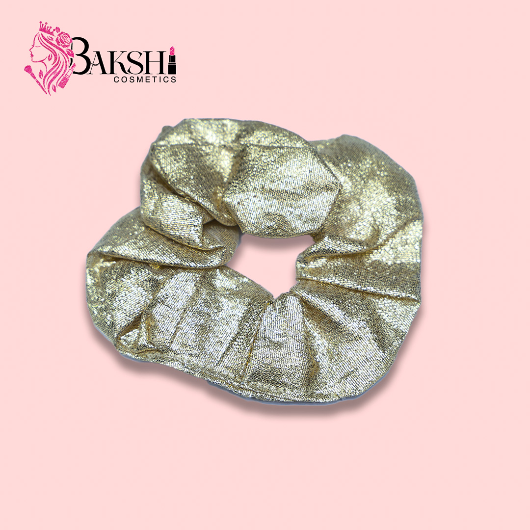Make your hairstyle shine with this gold shimmer hair scrunchie. Designed using glossy, premium fabric, it adds a glamorous touch to any look. Ideal for parties, weddings, festive occasions, and evening outings, this scrunchie is gentle on hair and helps maintain a secure hold without pulling. A must-have accessory to elevate both traditional and modern hairstyles.
