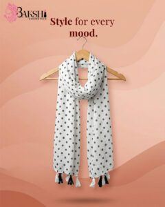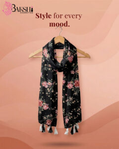 Elevate your daily look with the  Midnight Black Marble Print Stole from Bakshi. Designed to match every mood, this versatile accessory blends timeless patterns with a refreshing color palette.