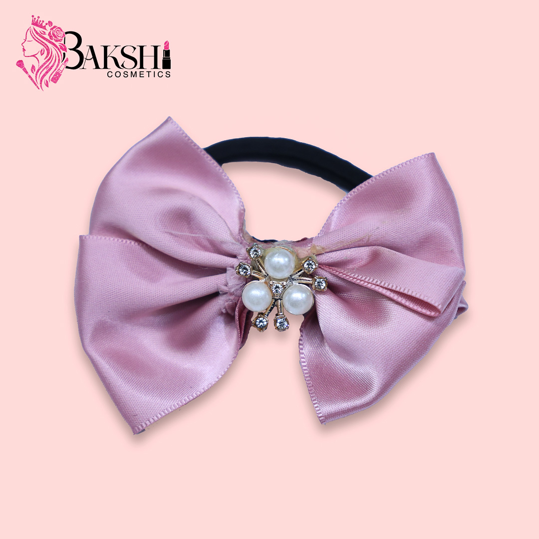 Add a graceful touch to your hairstyle with our Pearl Bow Elastic Hair Band. Featuring a beautiful satin bow in blush pink with pearl and crystal embellishment at the center.