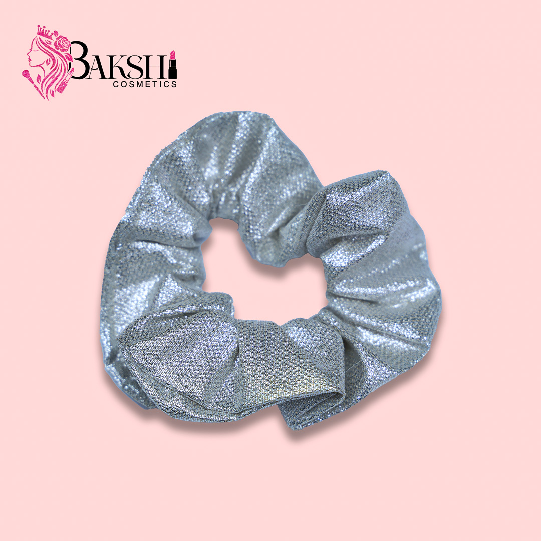 Make your hairstyle shine with this Silver shimmer hair scrunchie. Designed using glossy, premium fabric, it adds a glamorous touch to any look. Ideal for parties, weddings, festive occasions, and evening outings, this scrunchie is gentle on hair and helps maintain a secure hold without pulling. A must-have accessory to elevate both traditional and modern hairstyles.